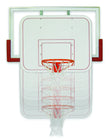 Six-Shooter will fit any style rim, regardless of age or manufacturer. A Six-Shooter unit lowers rim and moves rim 24" closer to the free throw line. A regulation size rim and net are included. High impact white ABS plastic backboard measures 39" high and 48" wide and has red shooter's square and boarder machined into face. Entire system weight is 49# allowing one person standing no more that 24" above playing surface to quickly and easily attach unit to a 10' high goal. Unit is not suitable for dunking or hanging from goal.